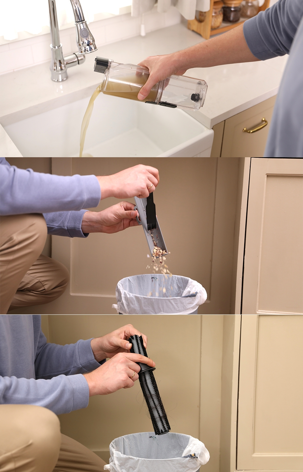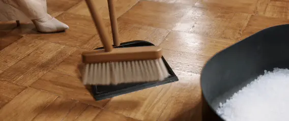 Egy seprű csak por és száraz törmelék takarítására alkalmas, amelyeket egy külön edénybe kell gyűjteni.