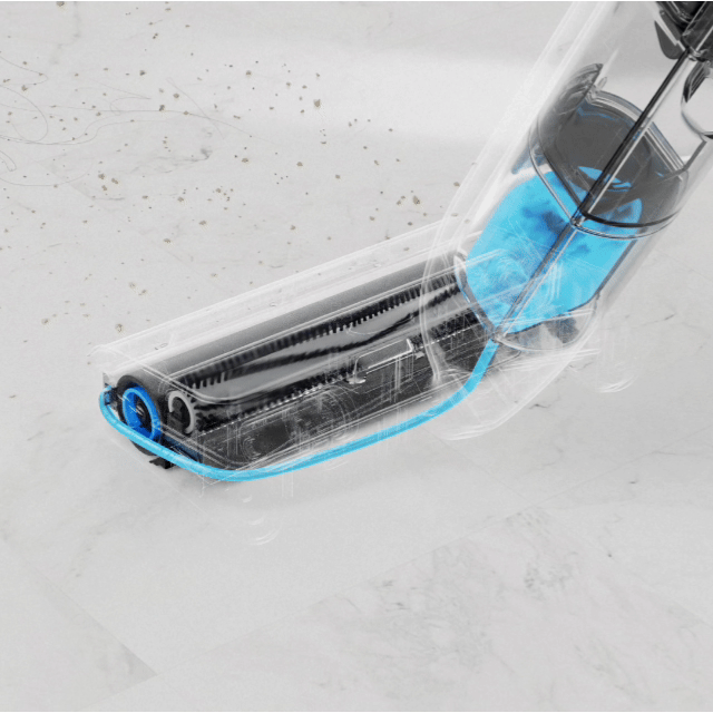 A többfunkciós henger, amely világszabadalom, hatékonyan felmossa a port, a törmeléket és a nedves szennyeződéseket a padlóról.